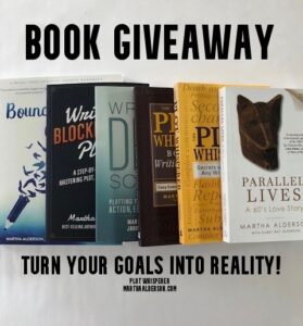 As you follow the steps to How to Create a Universal Story Planner for Writers, Artists, and Anyone with a Goal, you’re plotting a plan for success. To win the book of your choice, share your Universal Story Planner each step of the way. Each time you do, you’re automatically entered in a book giveaway. Simply post on Instagram a photo or video of your Universal Story Planner as you follow the steps. Be sure to include @plotwhisperer and #plotwhisperer and @marthasalderson to enter to win. Enter as often as you like.
