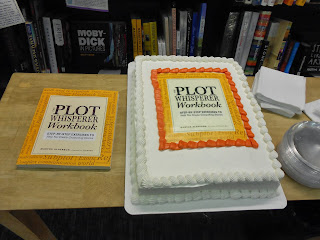I took her idea one step further and decorated the flat cake with a fondant cover of the book I was promoting — first for the The Plot Whisperer: Secrets of Story Structure Any Writer Can Master and followed in the same way with the The Plot Whisperer Workbook: Step-by-step Exercises to Help You Create Compelling Stories and then the The Plot Whisperer Book of Writing Prompts: Easy Exercises to Get You Writing Any leftovers I offered to the bookstore staff who always seemed so grateful!
